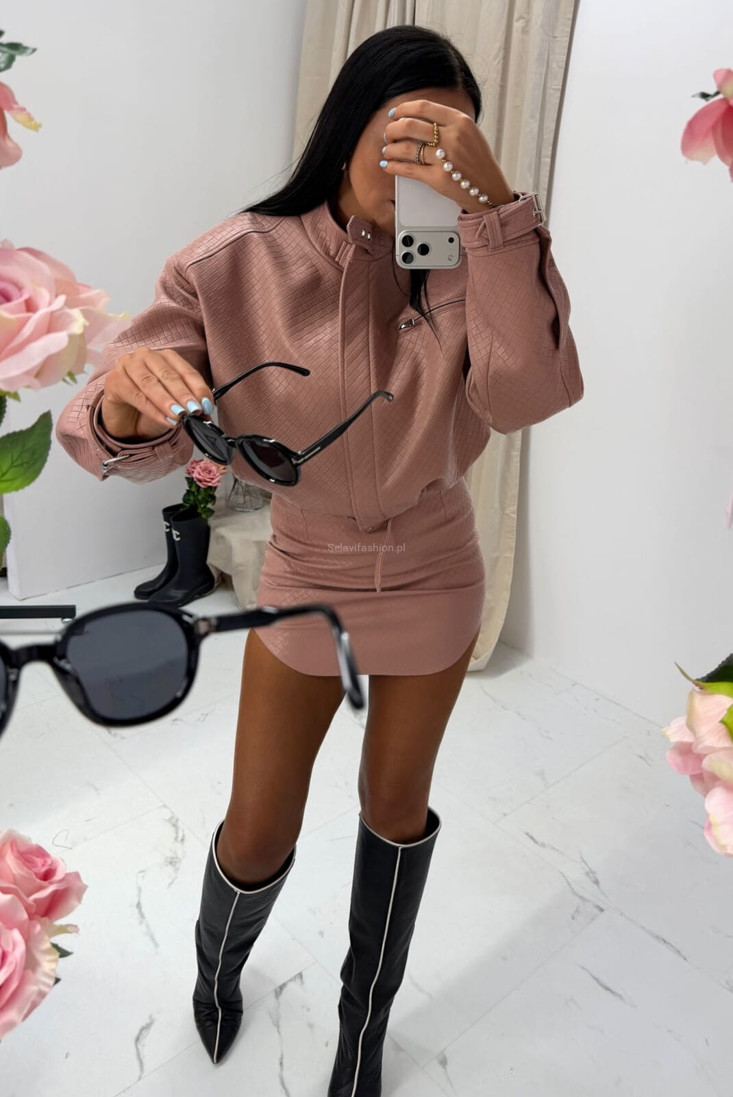 Spódniczka z ekoskóry plecionka La Milla pudrowy róż