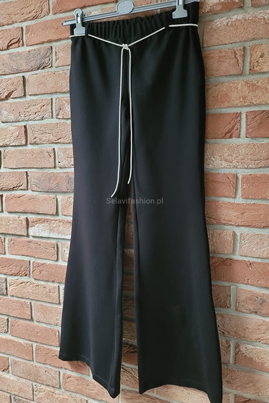 Spodnie dzwony ze srebrnym sznurkiem czarne Minouu