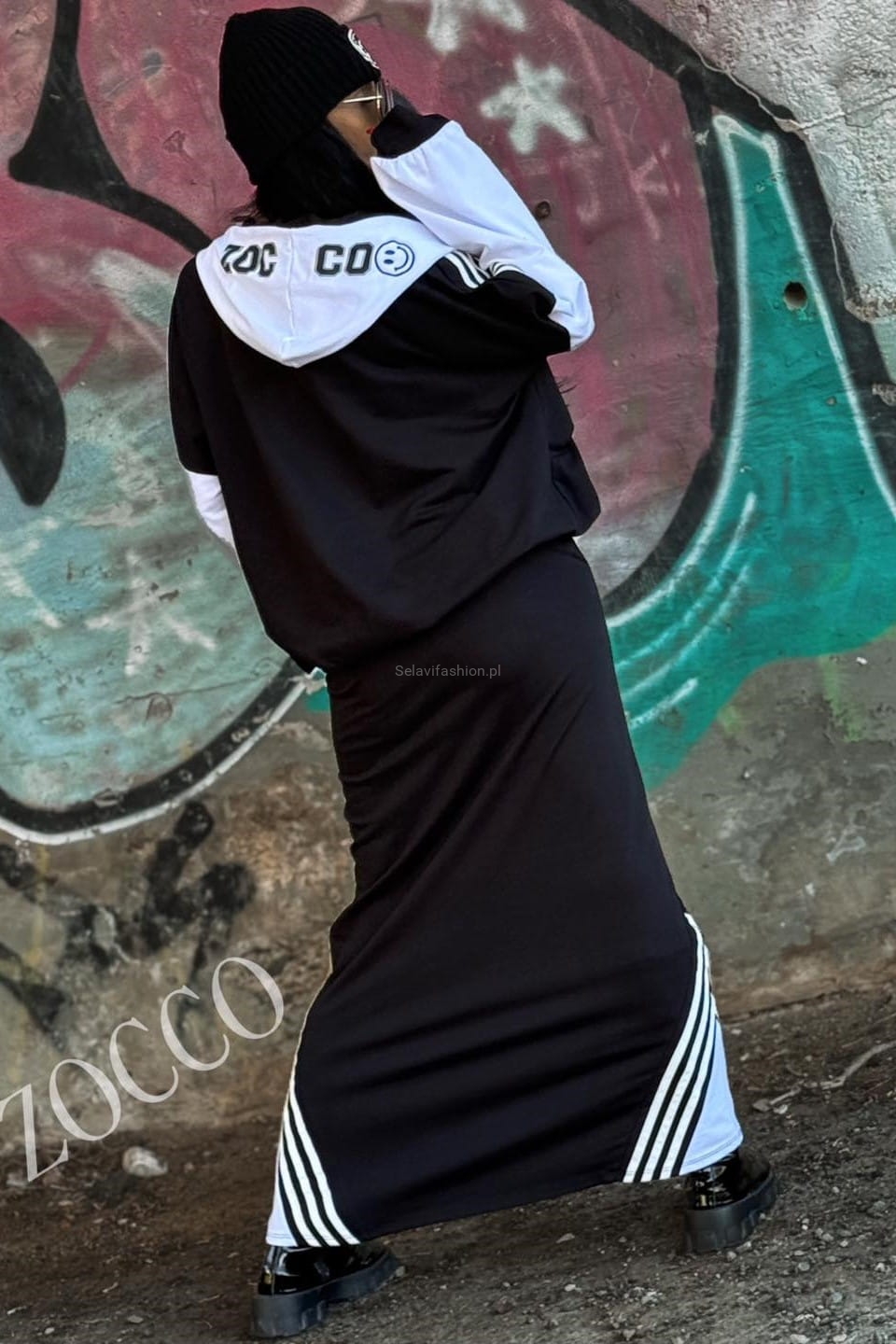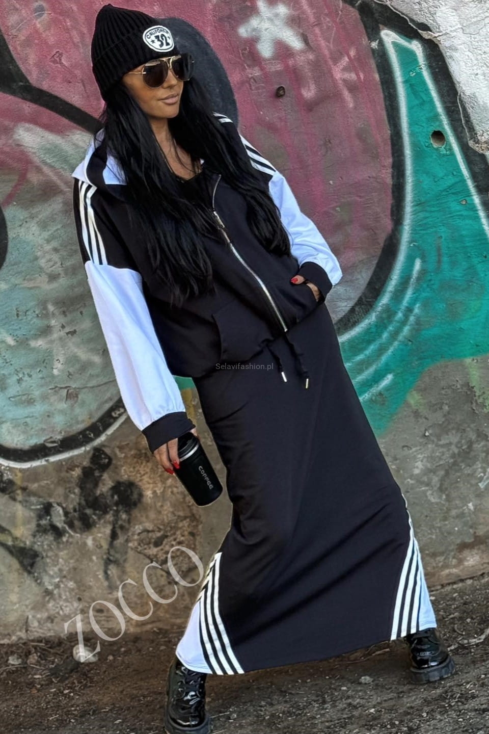 Sportowy komplet z maxi spódnicą i bluzą na zamek Zocco czarny