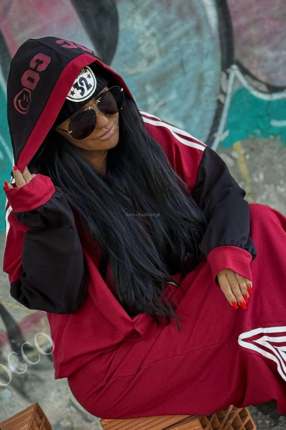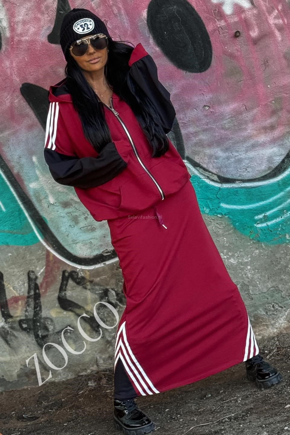 Sportowy komplet z maxi spódnicą i bluzą na zamek Zocco czerwony