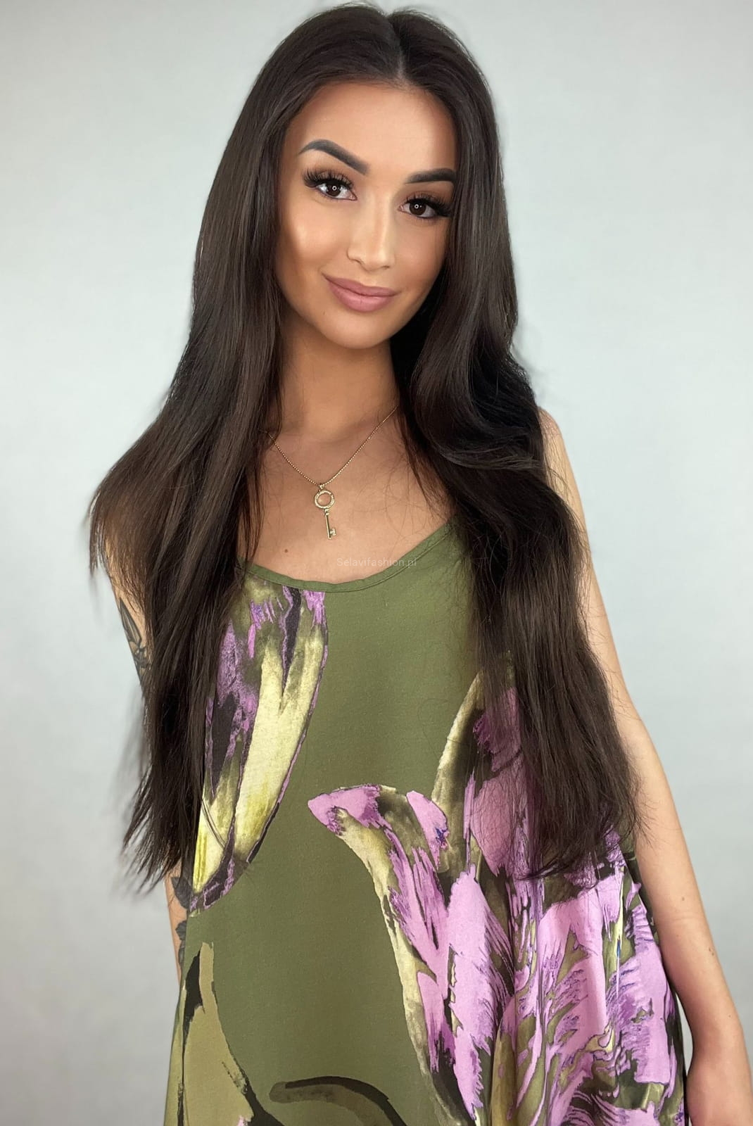 Sukienka malowane kwiaty Minouu zielona oliwka