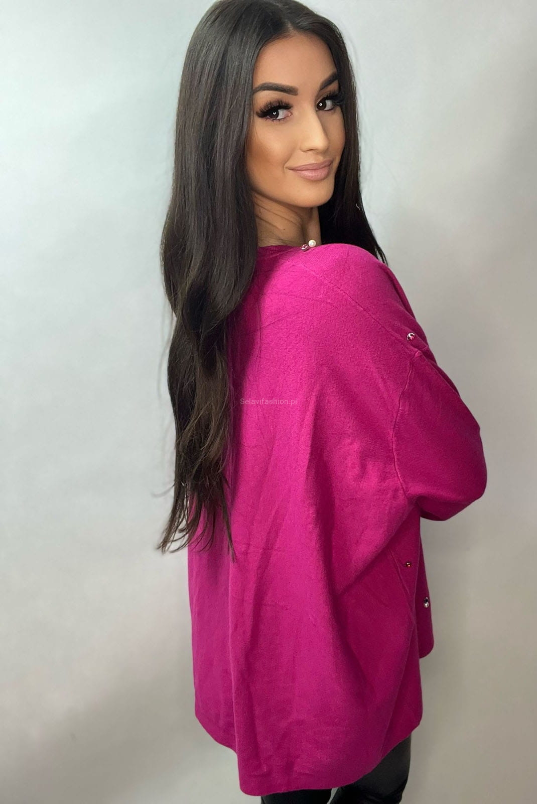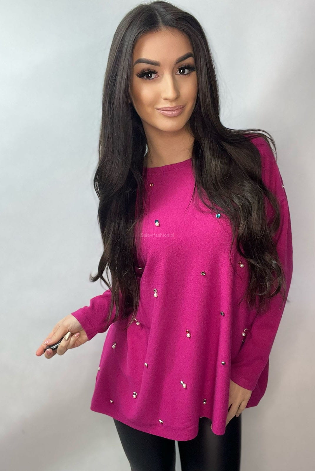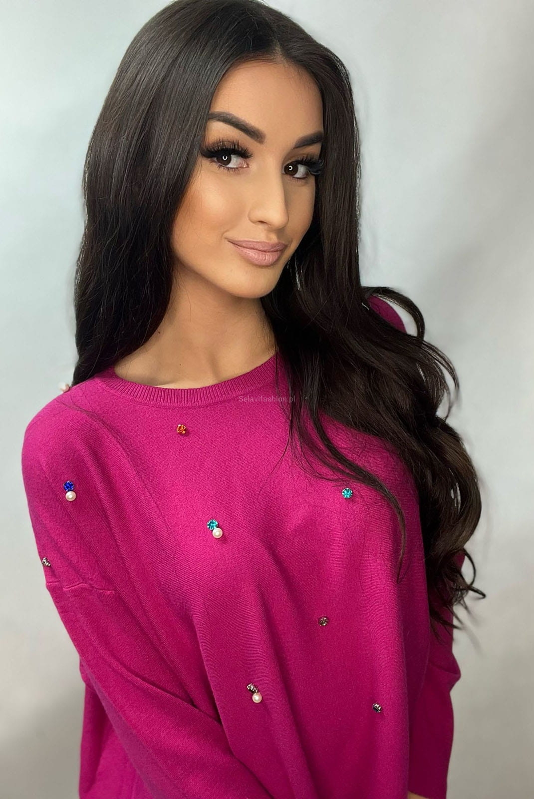 Sweter z kolorowymi kryształkami Minouu fuksja
