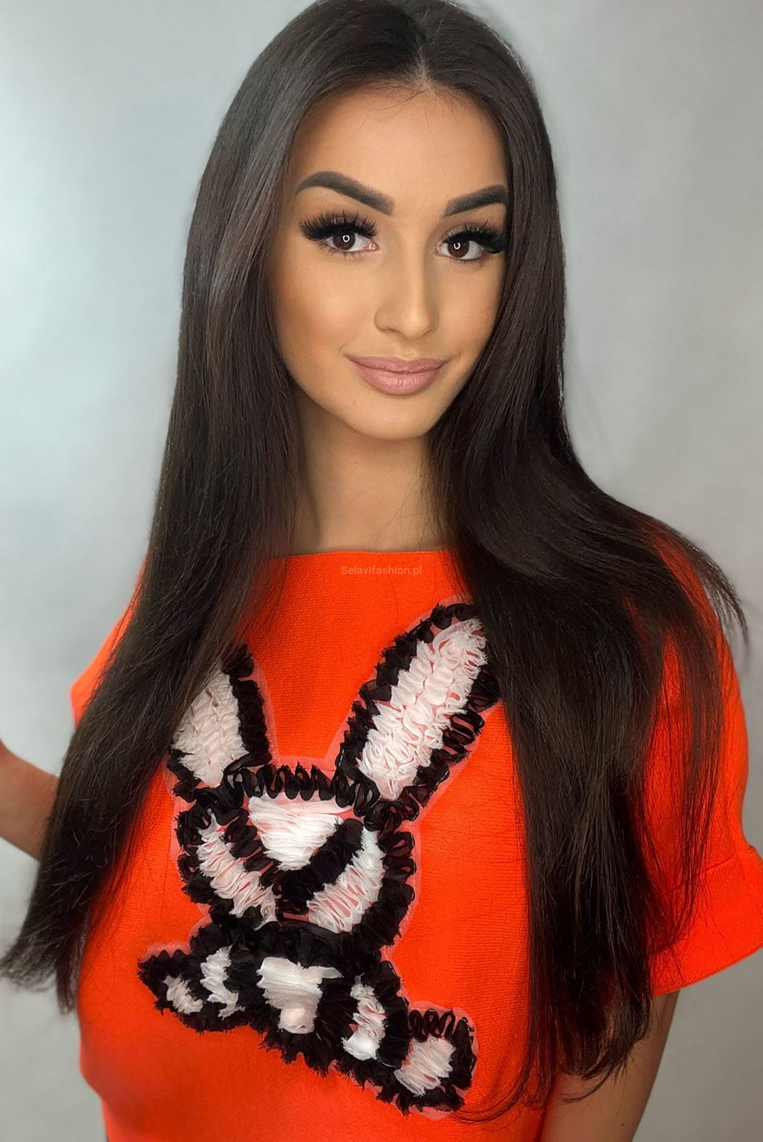 Sweter z krótkim rękawem Królik Geometry Minouu pomarańczowy
