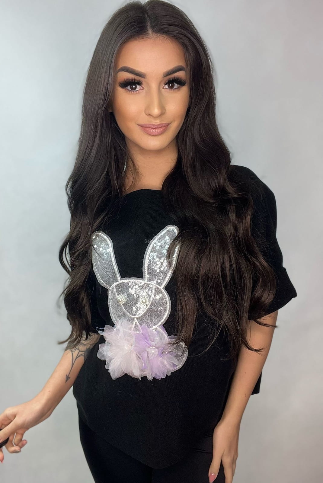 Sweter z krótkim rękawem Królik z tiulem Minouu czarny