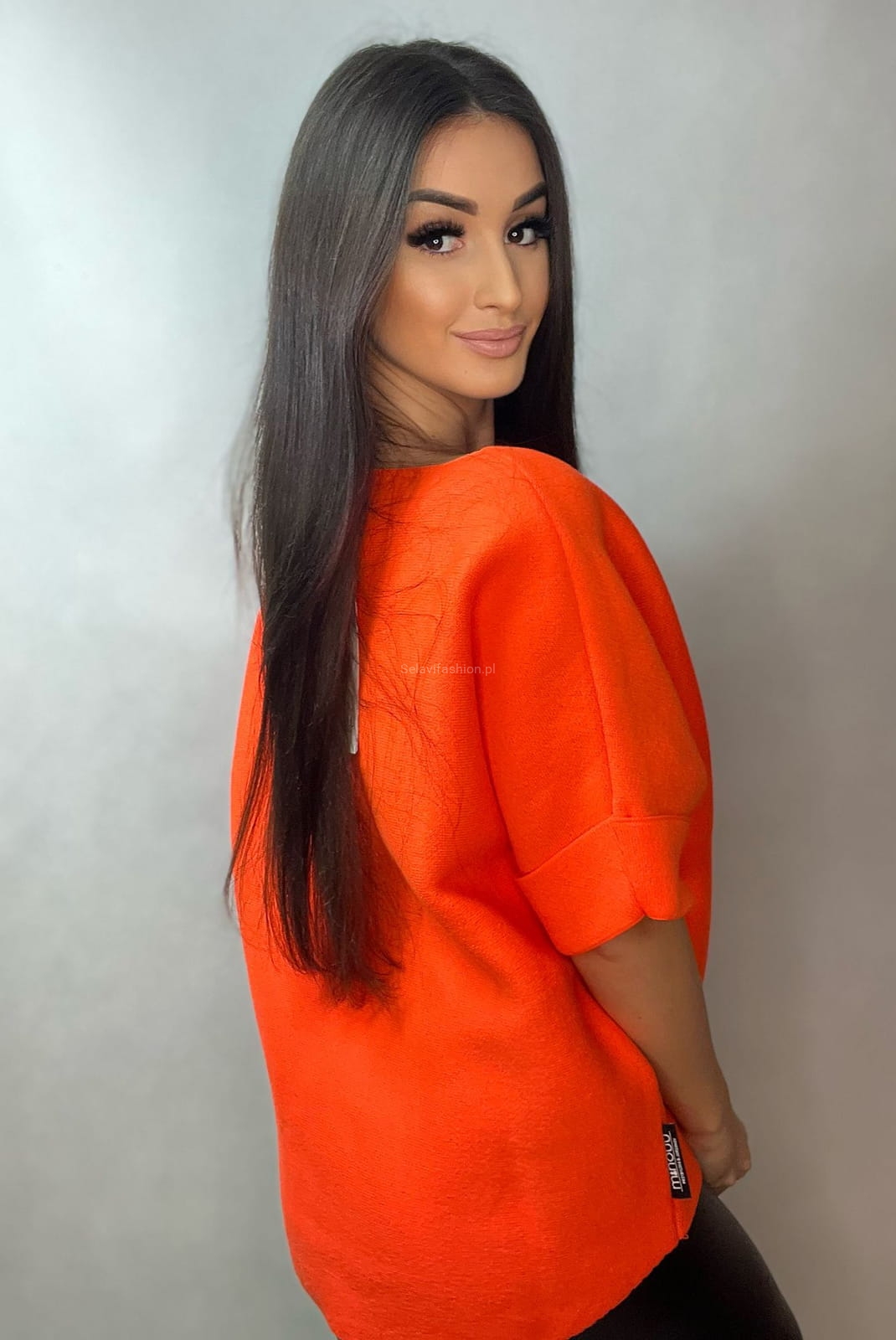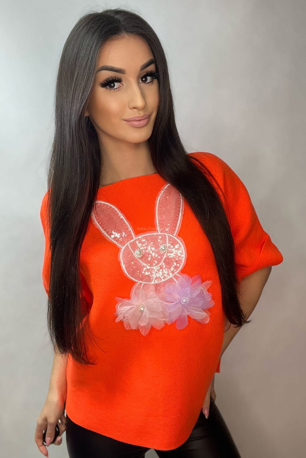 Sweter z krótkim rękawem Królik z tiulem Minouu pomarańczowy