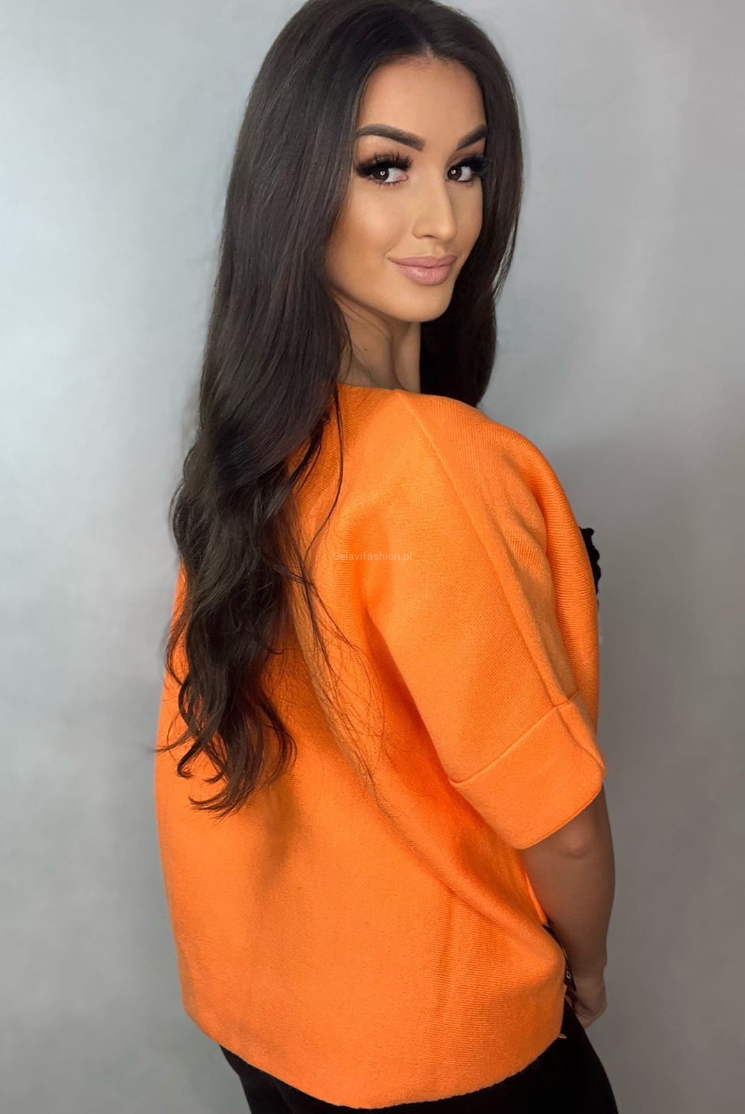 Sweter z krótkim rękawem Panda Minouu pomarańczowy