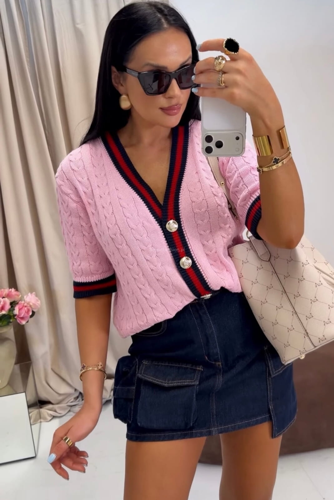 Sweter z krótkim rękawem zapinany na guziki La Milla różowy