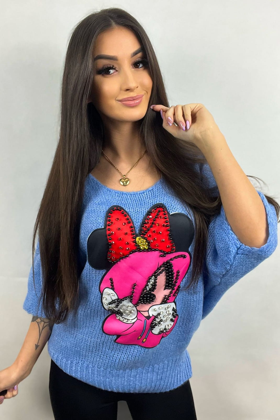 Sweter z rękawem 3/4 i Myszką Minnie Minouu jeansowy