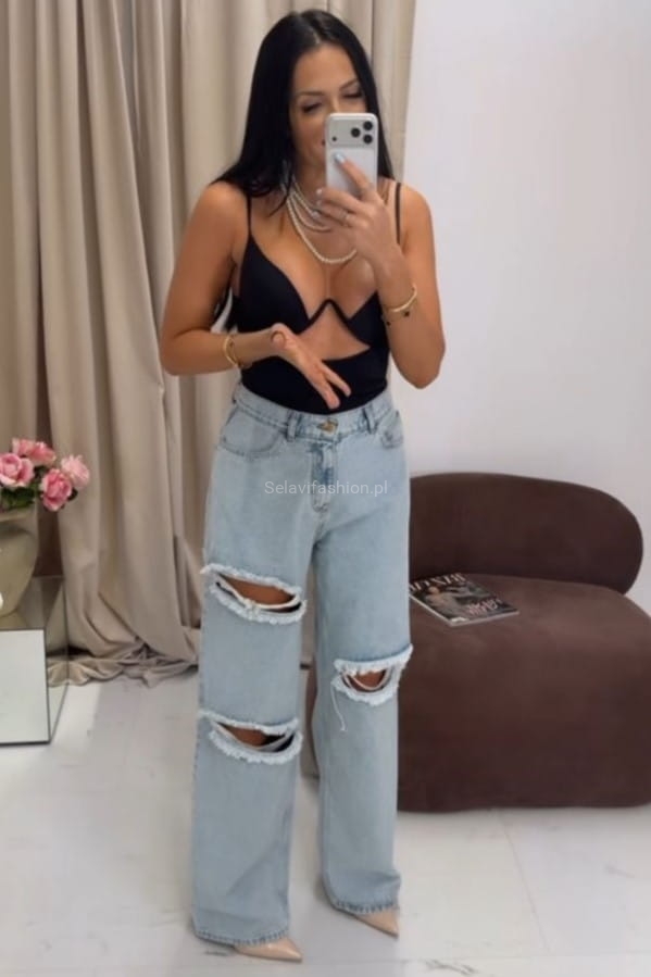 Szerokie jeansowe spodnie z dziurami La Milla niebieskie