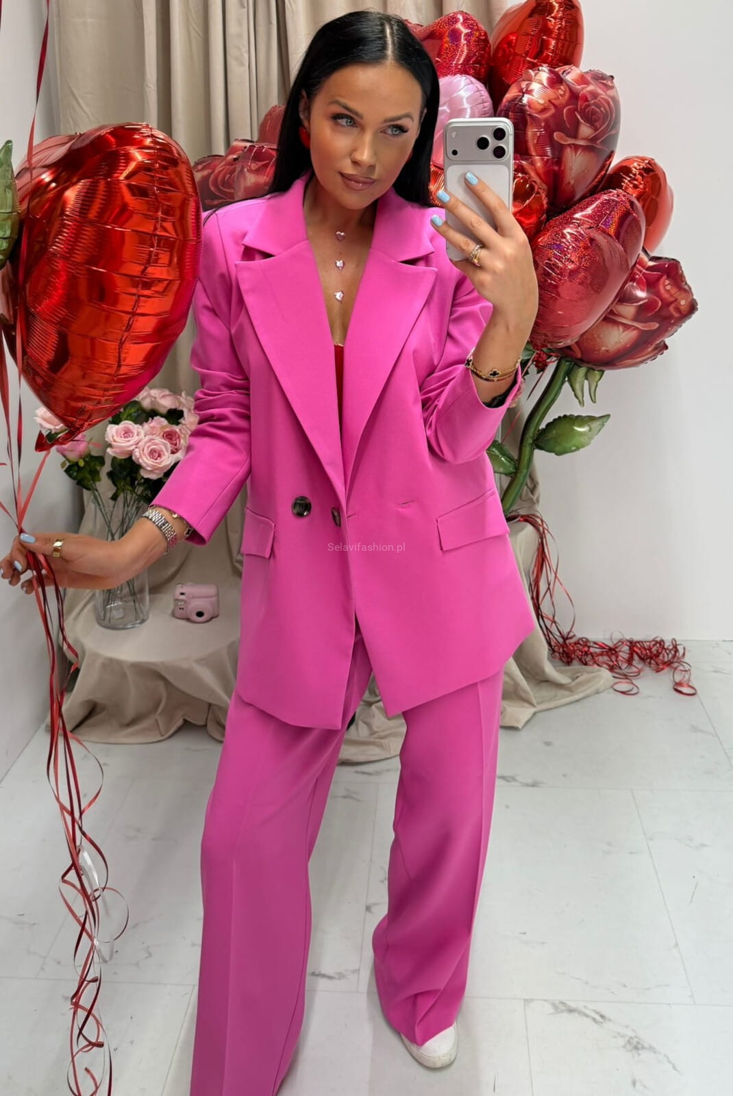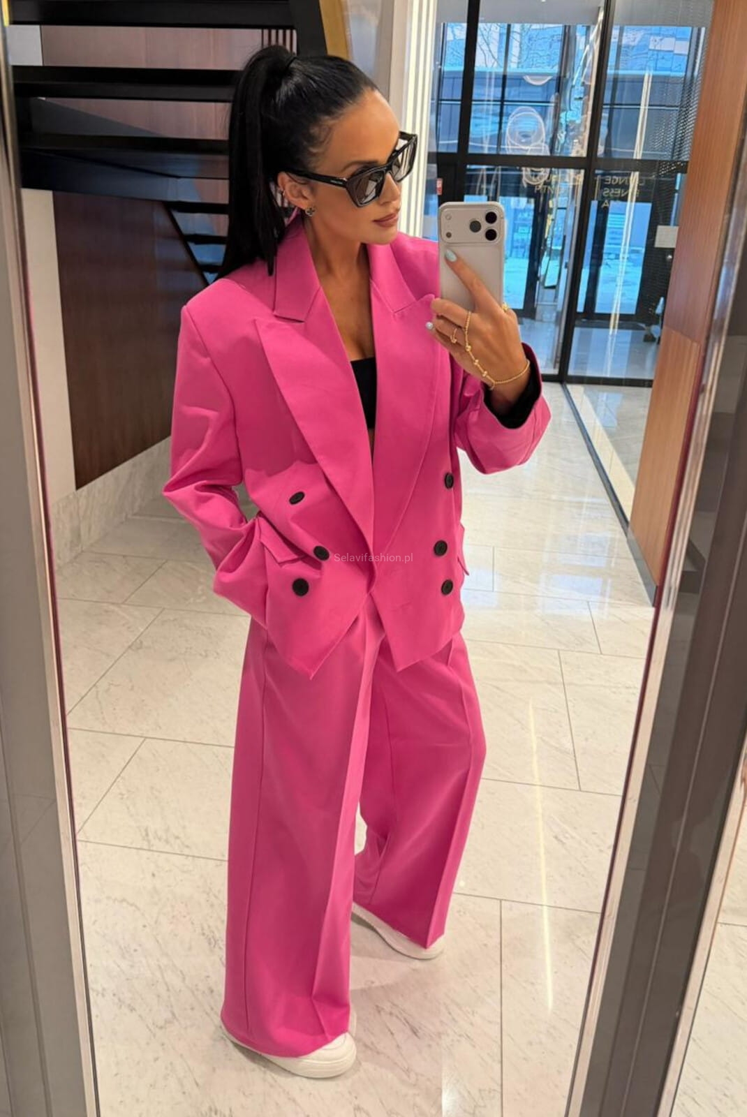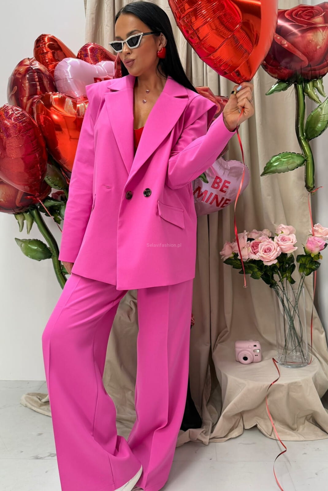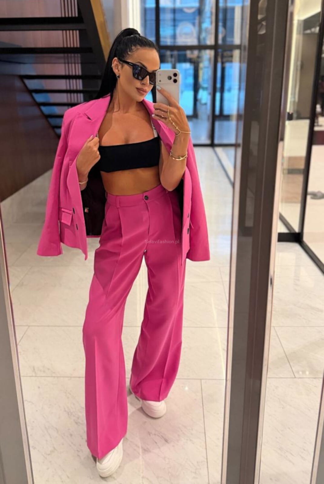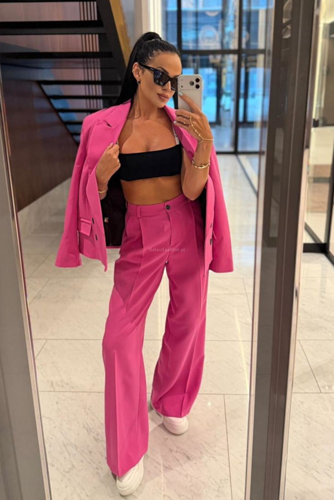 Szerokie spodnie z prostą nogawką w kant LaMilla fuksja