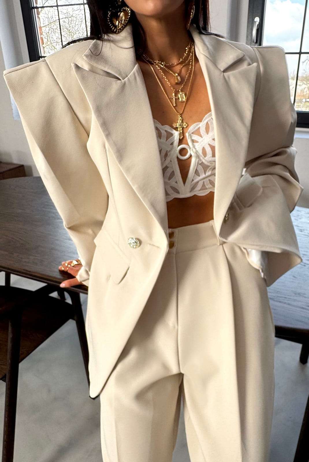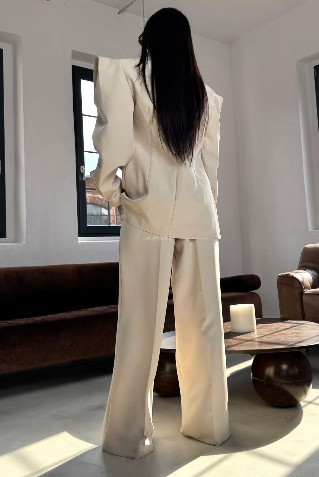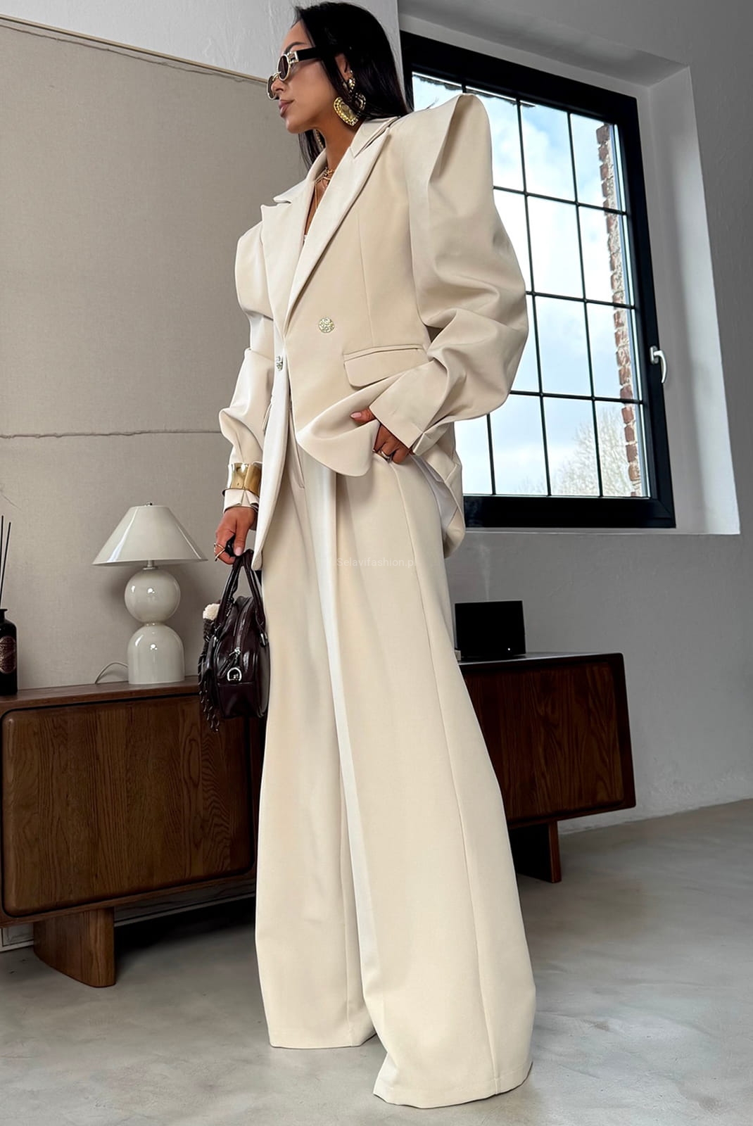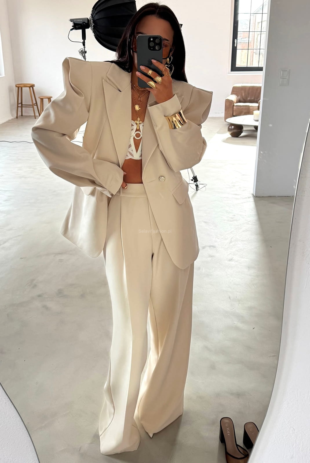 Szerokie spodnie z prostą nogawką w kant LaMilla jasno beżowe