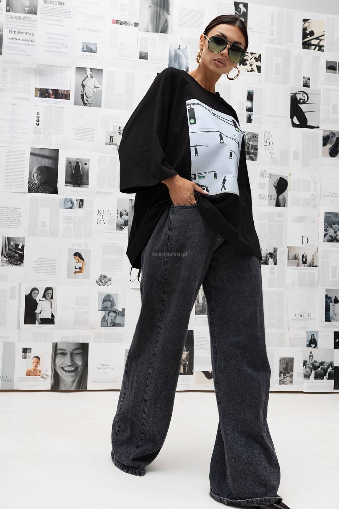 T-Shirt bluzka Crosswalk Signal Miss City Official czarna