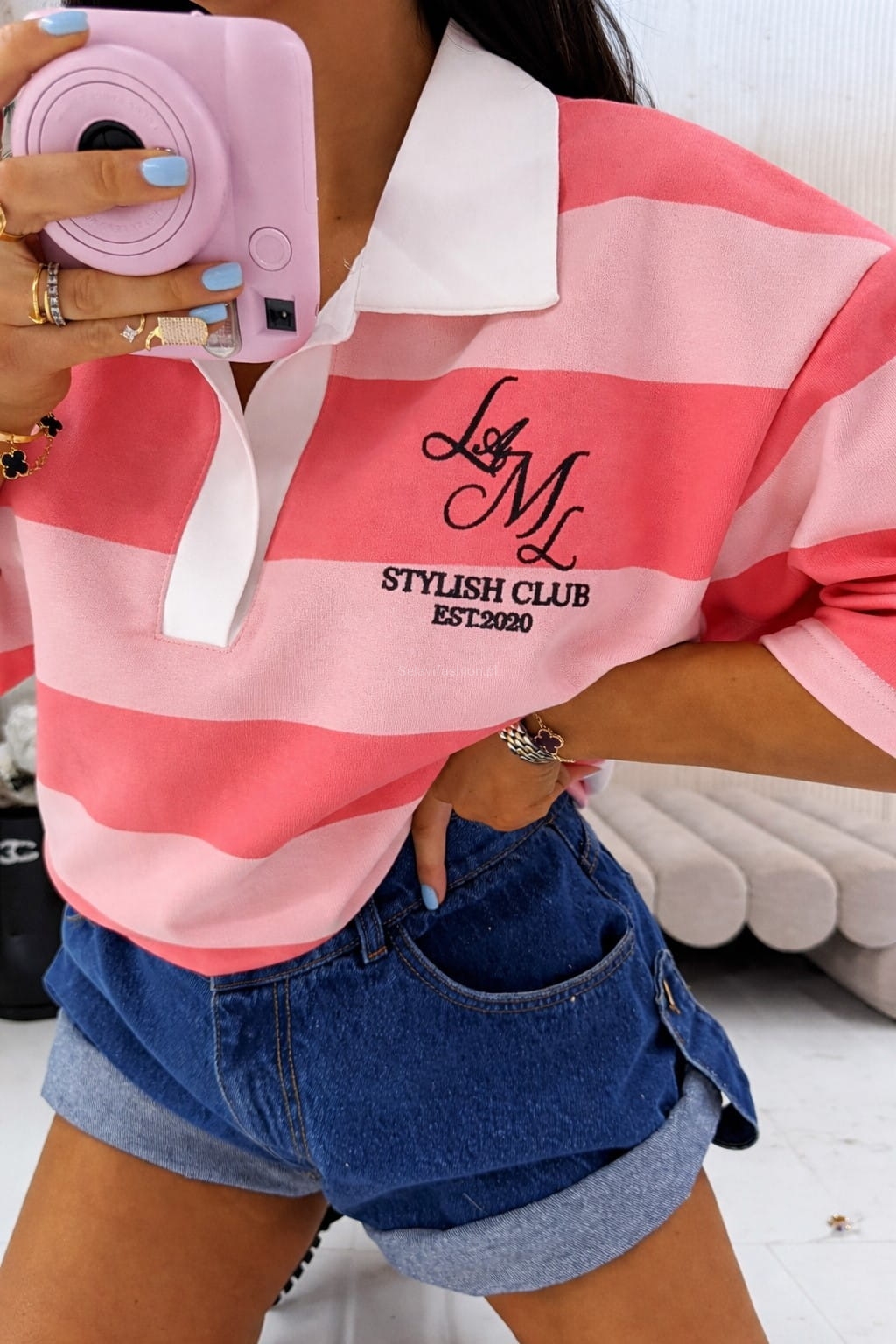 T-shirt bluzka oversizowa w paski La Milla różowa malinowa