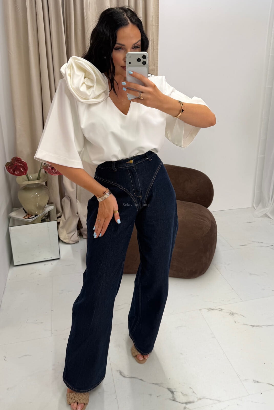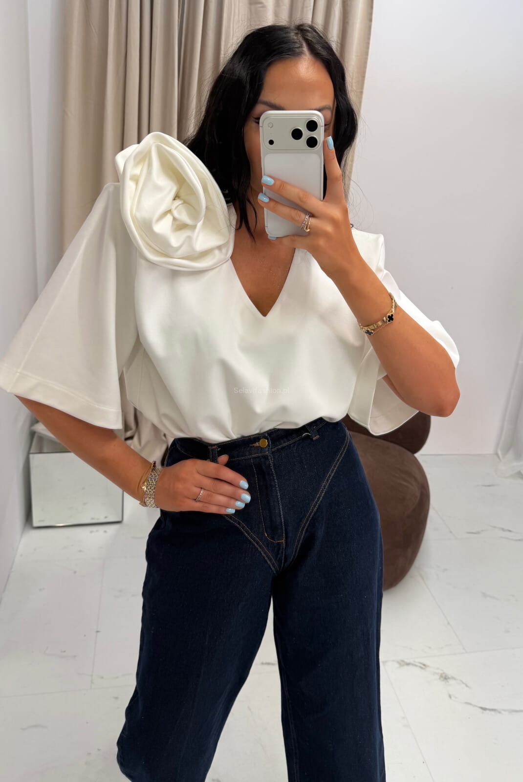 T-shirt bluzka oversizowa z różą La Milla biała