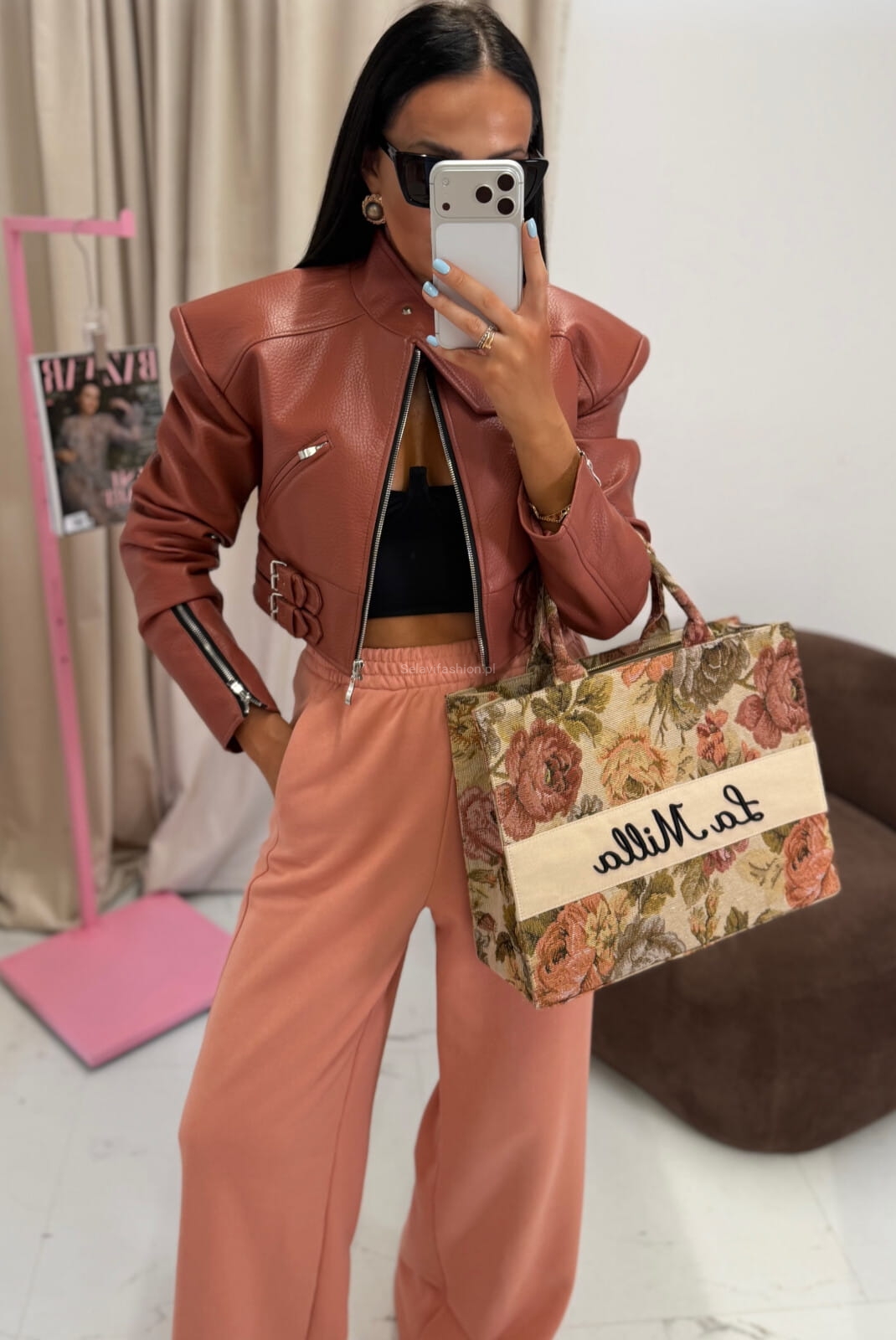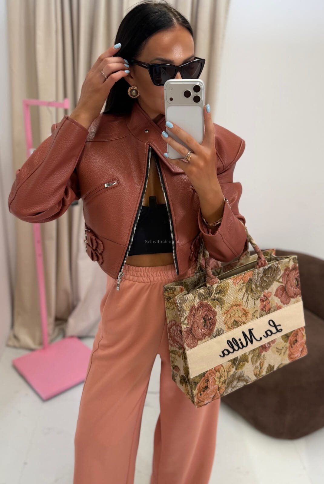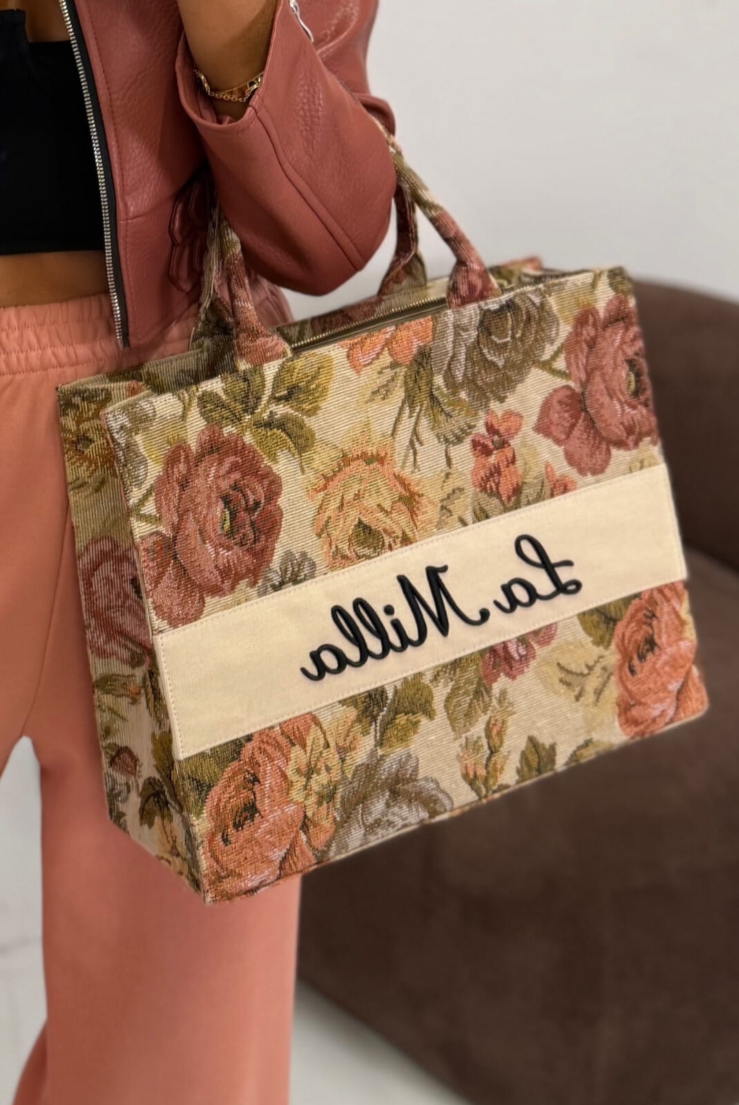 Torba żakardowa Rozalia La Milla różowa z czarnym napisem